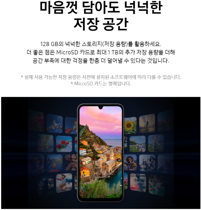 | 메모리 | 4GB/6GB RAM, 64GB/128GB 내장 메모리 (마이크로SD 카드 확장 가능) |