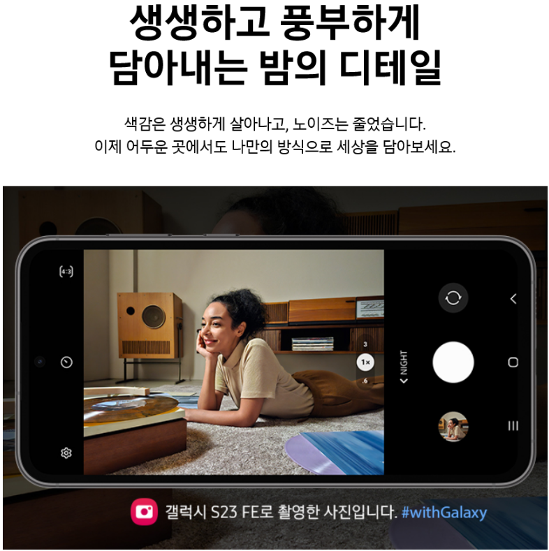 갤럭시 S23 FE는 50MP 메인 카메라를 포함한 트리플 렌즈 구성을 갖추고 있어, 다양한 촬영 환경에서도 뛰어난 사진 품질을 제공합니다. 특히, 나이토그래피(Nightography) 기능을 통해 저조도 환경에서도 선명한 사진을 찍을 수 있습니다. 이 기능은 야간 촬영 시에도 높은 퀄리티의 이미지를 제공하여, 어두운 환경에서도 생생한 사진을 얻을 수 있습니다. 이는 여행이나 야외 활동 시 매우 유용한 기능입니다.