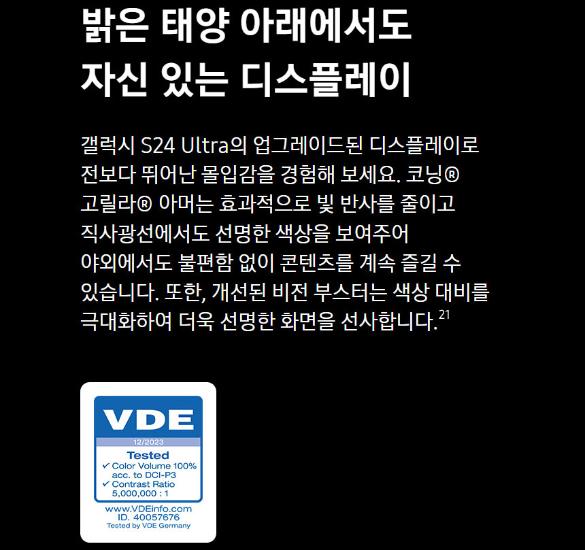 | 갤럭시 S24 울트라 디스플레이 | 6.8인치 QHD+ 동적 AMOLED 2X |