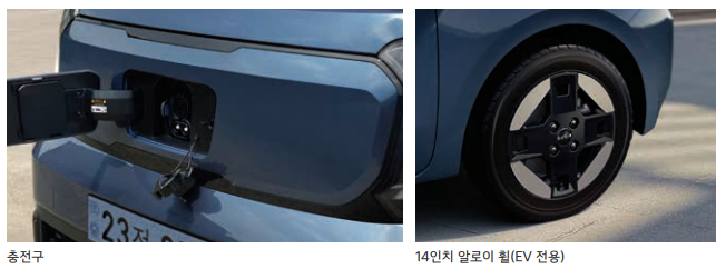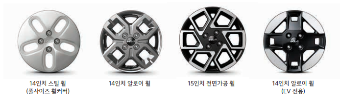 • 14인치 휠 기준: 복합연비 13.0km/L (도심 12.2km/L, 고속도로 14.0km/L)
