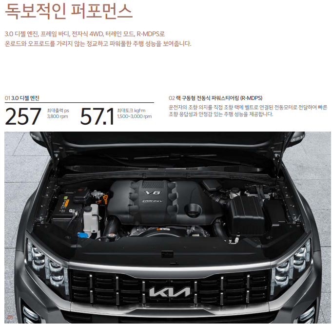 - 강력한 성능: V6 3.0 디젤 엔진의 파워풀한 주행 성능
