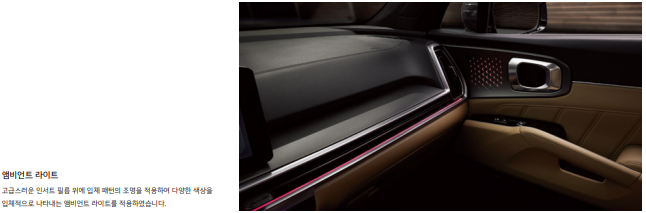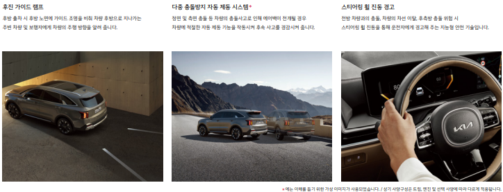 • 다양한 편의 사양: 쏘렌토 하이브리드는 첨단 운전자 보조 시스템, 10.25인치 내비게이션, 헤드업 디스플레이 등 다양한 편의 사양을 제공하여 운전자에게 편리하고 안전한 주행 경험을 제공합니다.