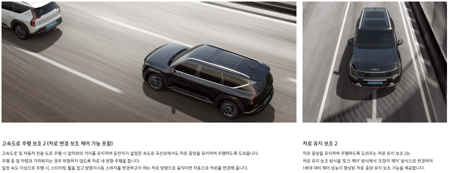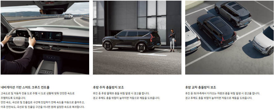 - 첨단 운전자 보조 시스템(ADAS): 전방 충돌 방지 보조, 차선 유지 보조, 스마트 크루즈 컨트롤 등