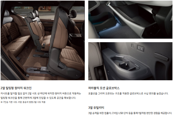 - 대형 SUV의 공간성: 가족 단위 여행에 최적화된 인테리어