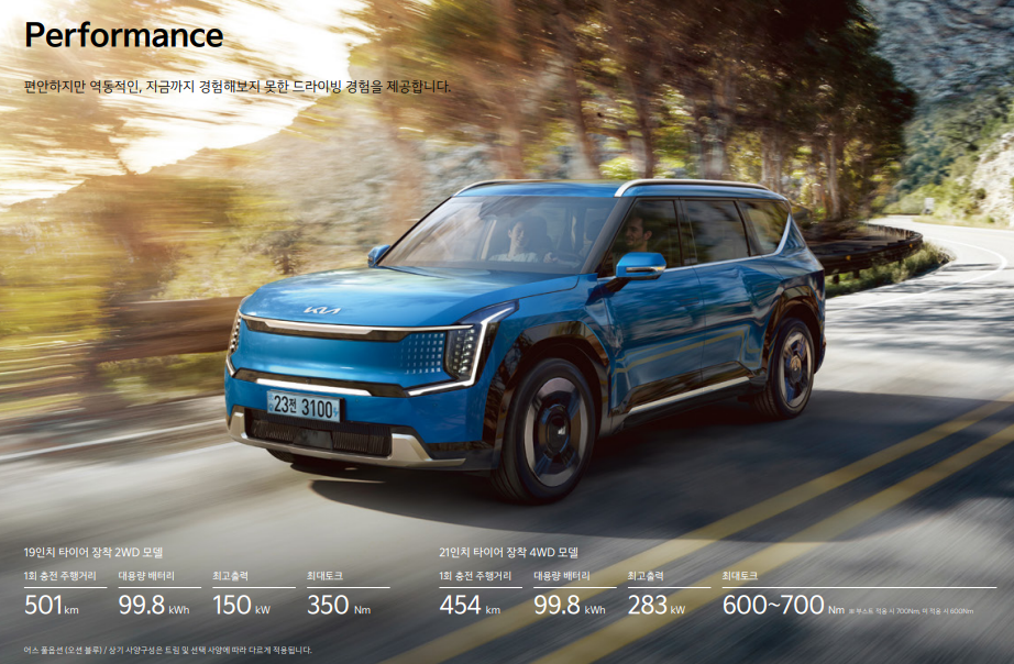 3. EV9 주행거리: 1회 충전으로 최대 501km!