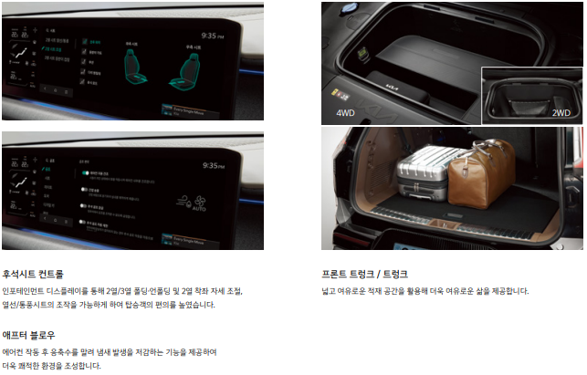 EV9은 다양한 고급 옵션을 제공해 사용자 경험을 극대화합니다.