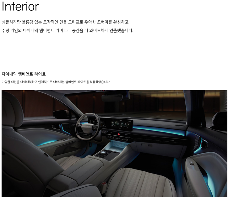 - LED 헤드램프, 19인치 전면가공 휠, 알루미늄 감성 내장재 등 고급스러운 디자인 요소 적용