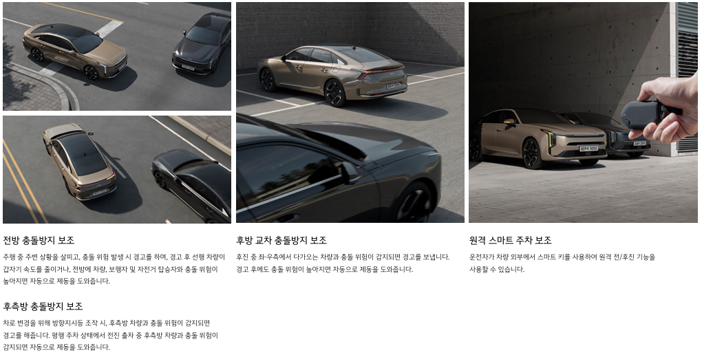 - 전방 충돌방지 보조, 차로 이탈방지 보조, 스마트 크루즈 컨트롤 등 첨단 운전자 보조 시스템 탑재