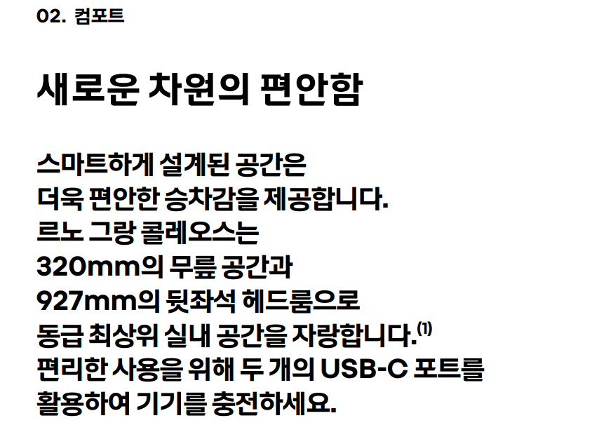 르노 그랑 콜레오스와 함께라면, 여러분의 일상이 더욱 특별해질 거예요. 지금 바로 행동으로 옮기세요! 르노 그랑 콜레오스가 여러분을 기다리고 있습니다!
