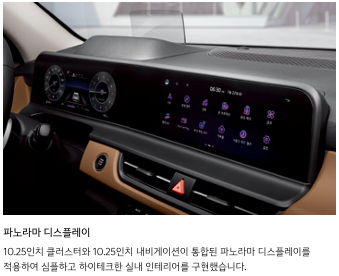 - 10.25인치 디스플레이와 파노라마 선루프 제공.