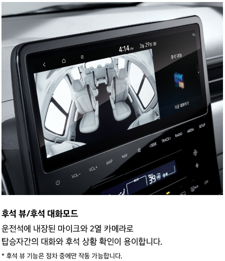 특히, 2열 독립 시트는 180도 회전이 가능해서 마주 보고 앉아 대화를 나누거나, 테이블을 펼쳐 간단한 업무를 볼 수도 있습니다. 차 안에서 누리는 최고의 편안함! 직접 경험해보세요! 🤩