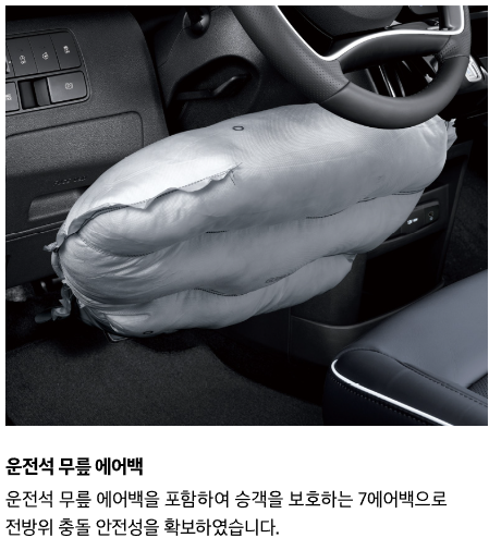 • 크기: 전장 5,253mm, 전폭 1,997mm, 전고 1,990mm (웬만한 SUV보다 넓은 공간!)