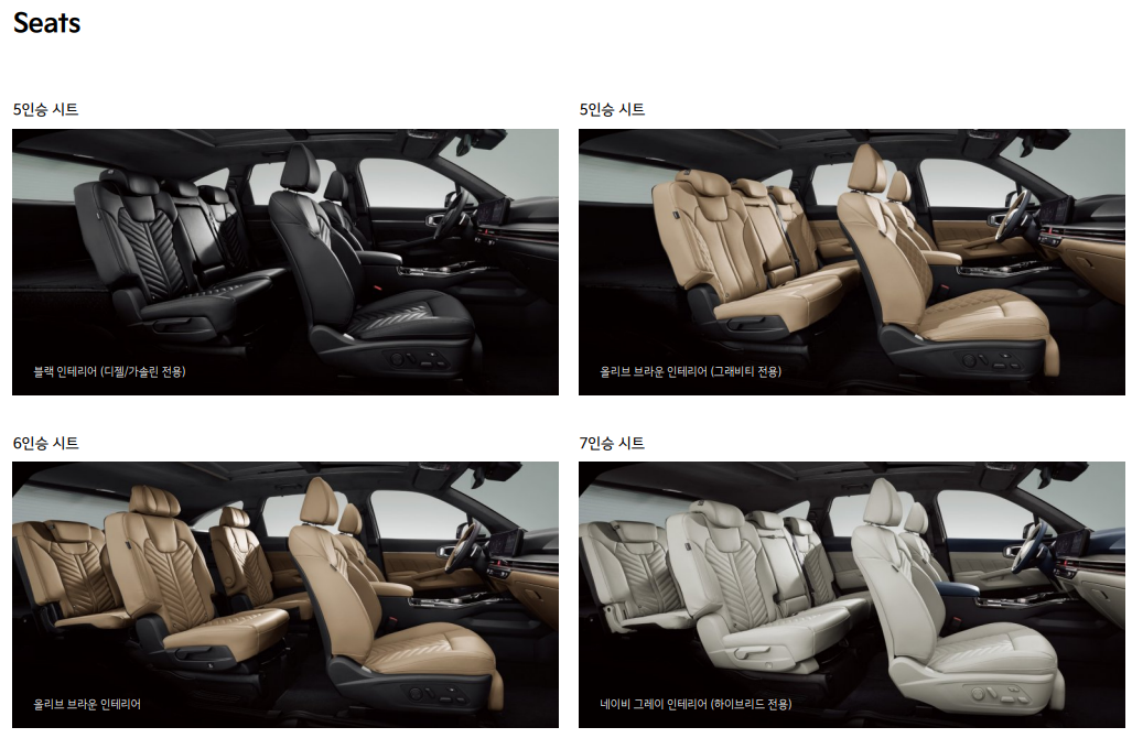 주목할 만한 점: 6인승과 7인승 옵션도 있어 가족 구성에 맞춰 선택할 수 있습니다. 6인승은 2열 독립시트로 고급스러움을, 7인승은 최대의 실용성을 제공합니다.