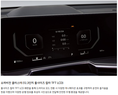 - 12.3인치 내비게이션: 대화면으로 편리한 길 안내와 다양한 멀티미디어 기능을 즐길 수 있습니다.