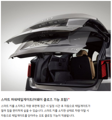 - 원격 스마트 주차 보조 (RSPA): 좁은 주차공간에서도 스마트키로 차량을 조작해 주차할 수 있습니다.