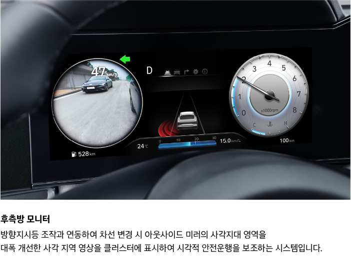 - 복합 연비: 15.0km/ℓ (도심 13.5km/ℓ, 고속도로 17.3km/ℓ)