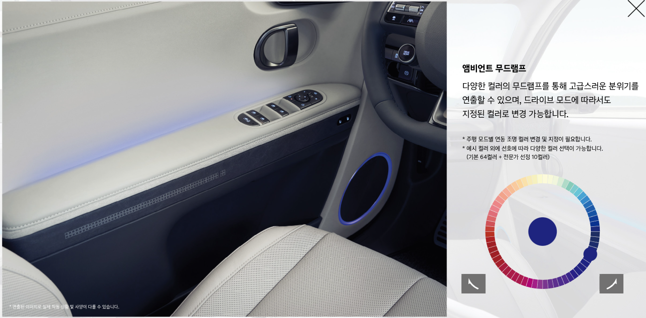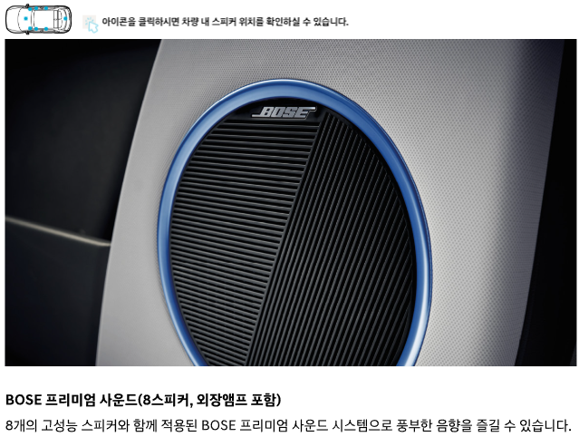 - 혁신적인 옵션: 디지털 사이드 미러, 릴렉션 컴포트 시트 등