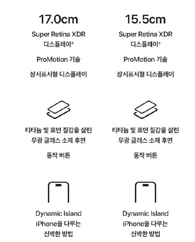 | 아이폰 15 프로 칩셋 | A17 프로 | A16 Bionic |