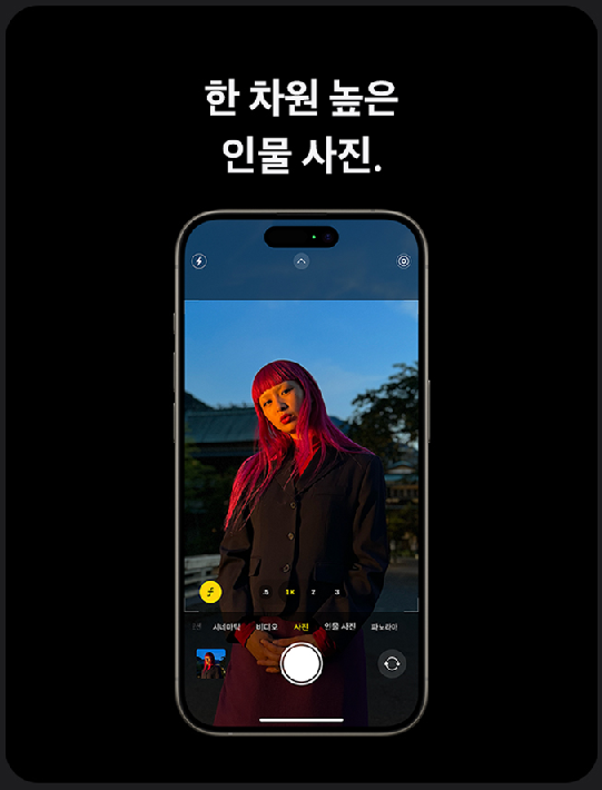 • 아이폰 15 프로 맥스 메인 카메라: 48MP, ƒ/1.78 조리개