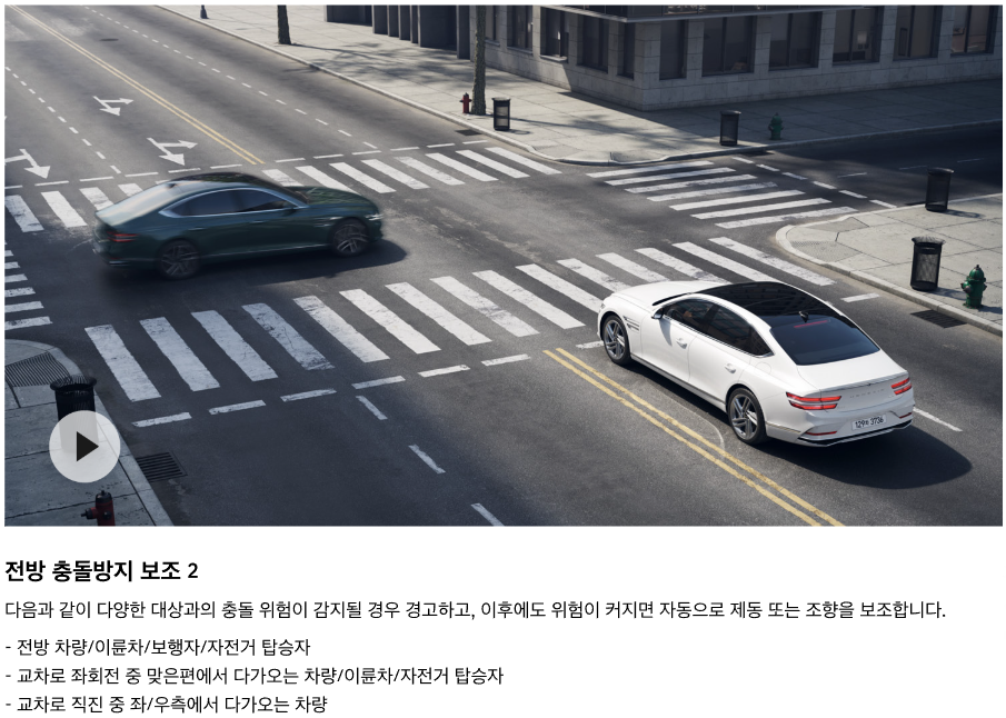 - 스마트 크루즈 컨트롤: 차량 간 거리 유지 및 속도 조절.