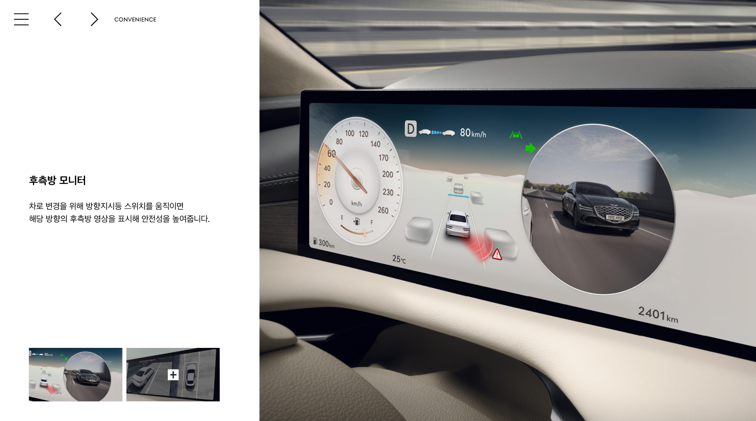 제네시스 G80은 다양한 첨단 기술을 통해 운전자의 편의성과 안전성을 극대화합니다.