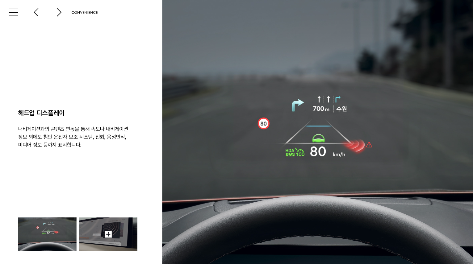 - ADAS(첨단 운전자 보조 시스템): 차선 유지 보조, 고속도로 주행 보조 등.