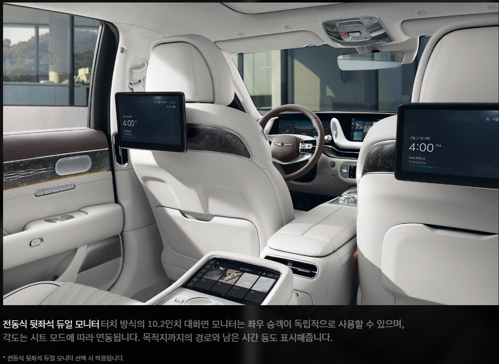 - 뒷좌석 엔터테인먼트 시스템: 장거리 여행이 지루하지 않도록 해주는 옵션이에요. 고해상도 디스플레이와 프리미엄 사운드 시스템이 탑재되어 있답니다.