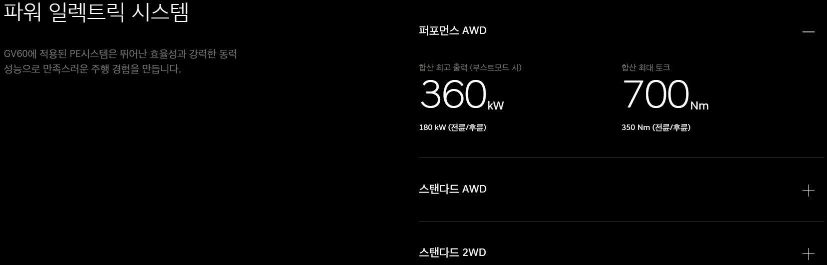 - 제네시스 GV60 구동 방식: 2WD(후륜) 또는 AWD(4륜)