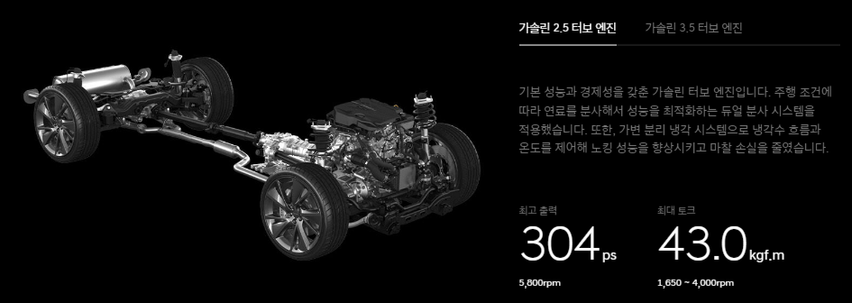 - "2.5 가솔린 모델도 충분히 강력한 주행 성능을 제공해요. 고속도로에서의 가속감이 특히 인상적이었습니다."