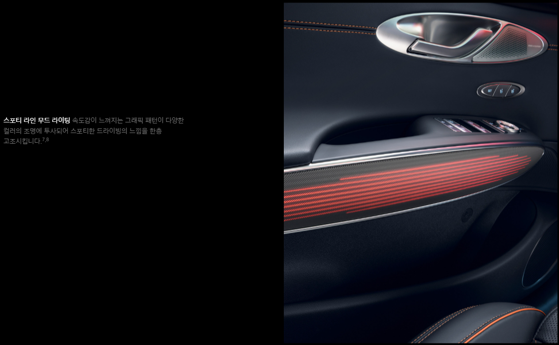 - 쿼드 램프: 전후면의 두 줄 디자인 램프가 제네시스 GV70의 정체성을 강조합니다.