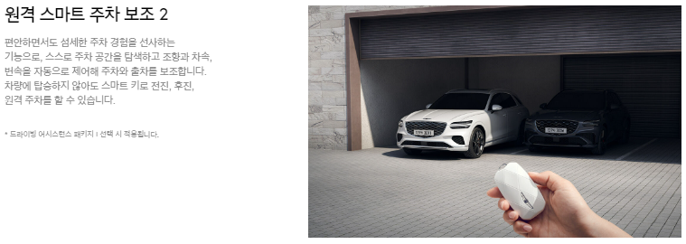 - 원격 스마트 주차 보조: 차량 외부에서 스마트키로 주차를 조작할 수 있습니다.
