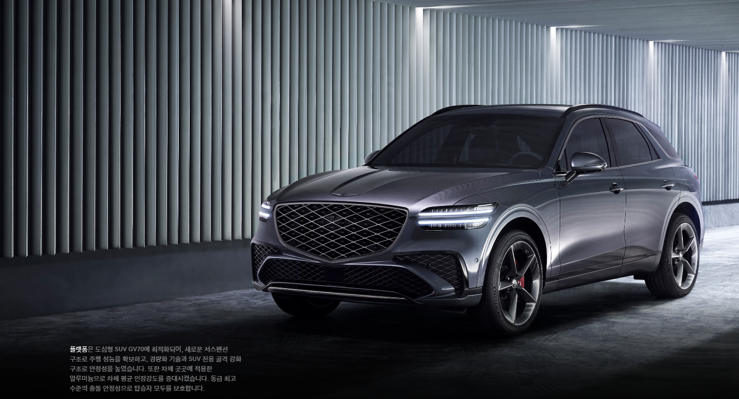 지금 바로 제네시스 GV70와 함께 새로운 드라이빙의 세계로 떠나보세요. 여러분의 선택이 곧 여러분의 라이프스타일을 결정합니다. 제네시스 GV70와 함께라면, 매일매일이 특별한 여정이 될 것입니다.