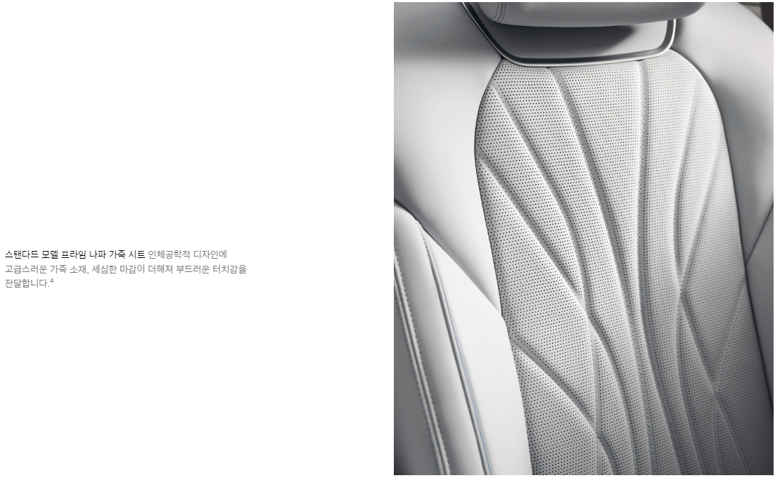 - 프라임 나파 가죽 시트: 최고급 소재로 편안함과 럭셔리함을 동시에 제공합니다.