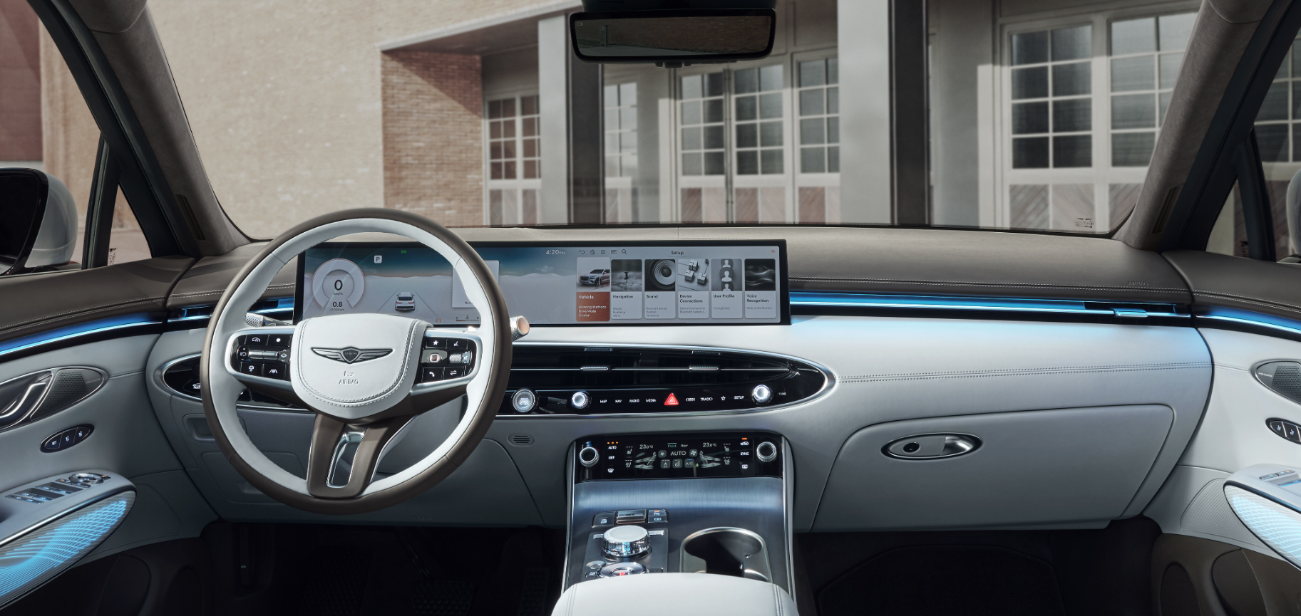 제네시스 GV70의 실내는 고급스러움과 첨단 기술이 조화롭게 어우러져 있습니다. 주요 특징으로는: