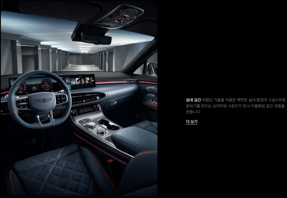 - 쿼드 램프: 전후면의 두 줄 디자인 램프가 제네시스 GV70의 정체성을 강조합니다.