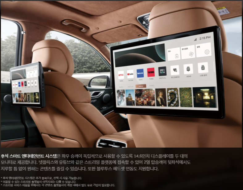 "어떤 옵션이 눈에 띄시나요? 가족과 함께 장거리 여행을 즐기신다면 3열 시트 패키지를, 첨단 기술의 향연을 즐기고 싶다면 27인치 OLED 디스플레이를 추천드립니다!"