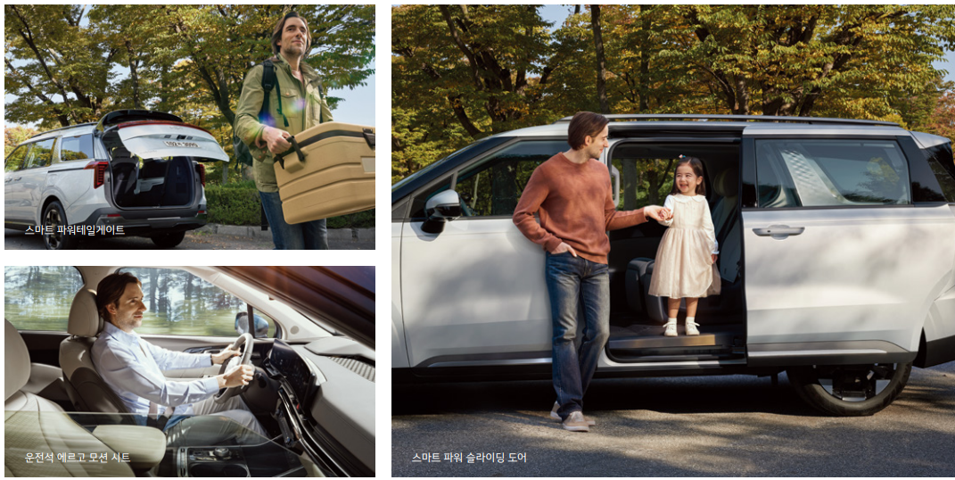 - 스마트 파워 슬라이딩 도어: 버튼 하나로 편리하게 문을 열고 닫을 수 있습니다.