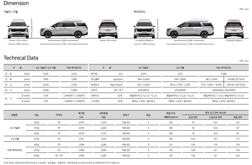 | 카니발 (일반 모델) | 5,155 | 1,995 | 1,740 | 3,090 |