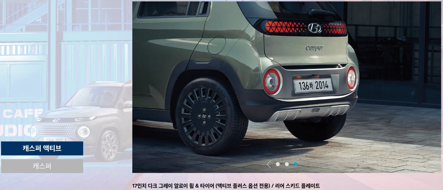 | 캐스퍼 인스퍼레이션 | 18,000,000원~ | - 17인치 알로이 휠 - 10.25인치 내비게이션 - 블루링크 |