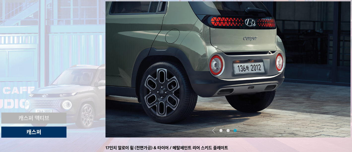 | 캐스퍼 인스퍼레이션 | 18,000,000원~ | - 17인치 알로이 휠 - 10.25인치 내비게이션 - 블루링크 |