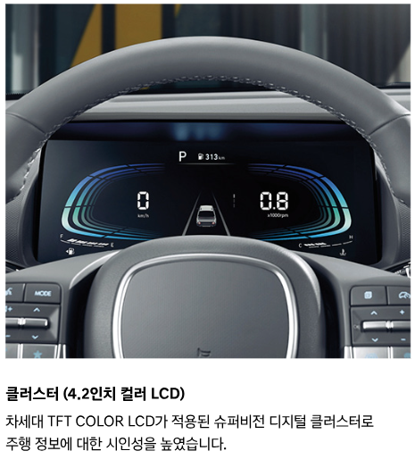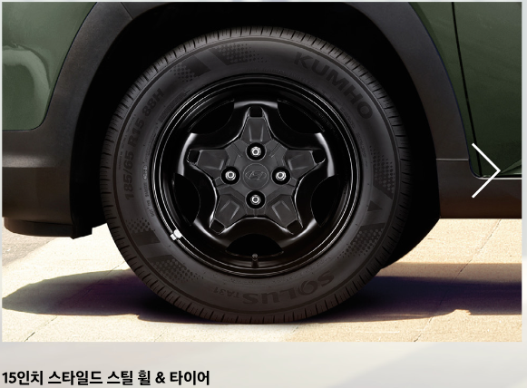 | 캐스퍼 스마트 | 13,850,000원~ | - 기본 안전 사양 탑재 - 15인치 스틸 휠 - 4.2인치 슈퍼비전 클러스터 |