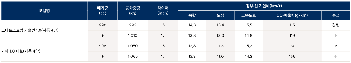 - 캐스퍼 연비: 17.5 km/L (복합 연비 기준)