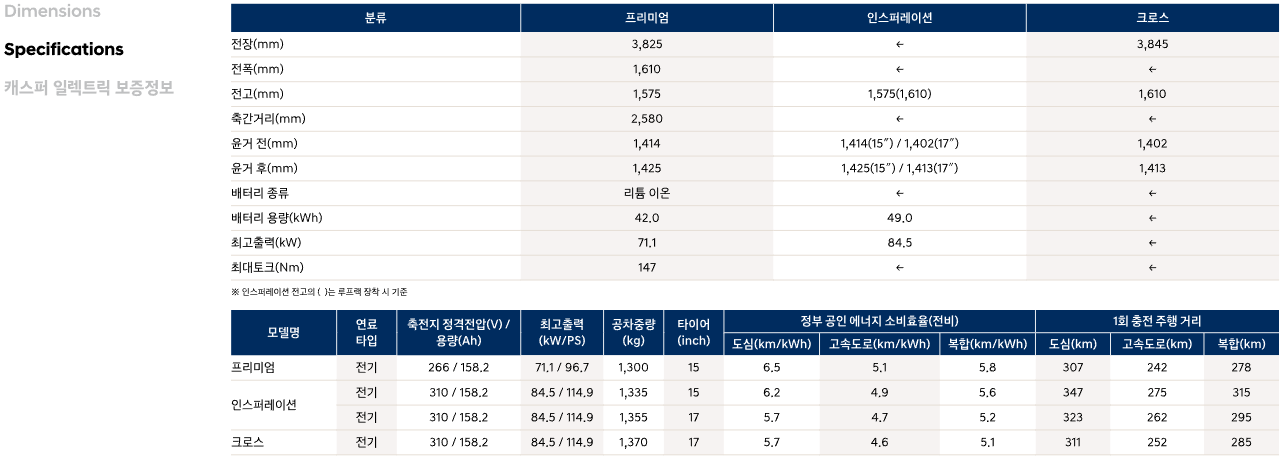 캐스퍼 일렉트릭 제원: 소형 전기 SUV의 새로운 기준 🚀