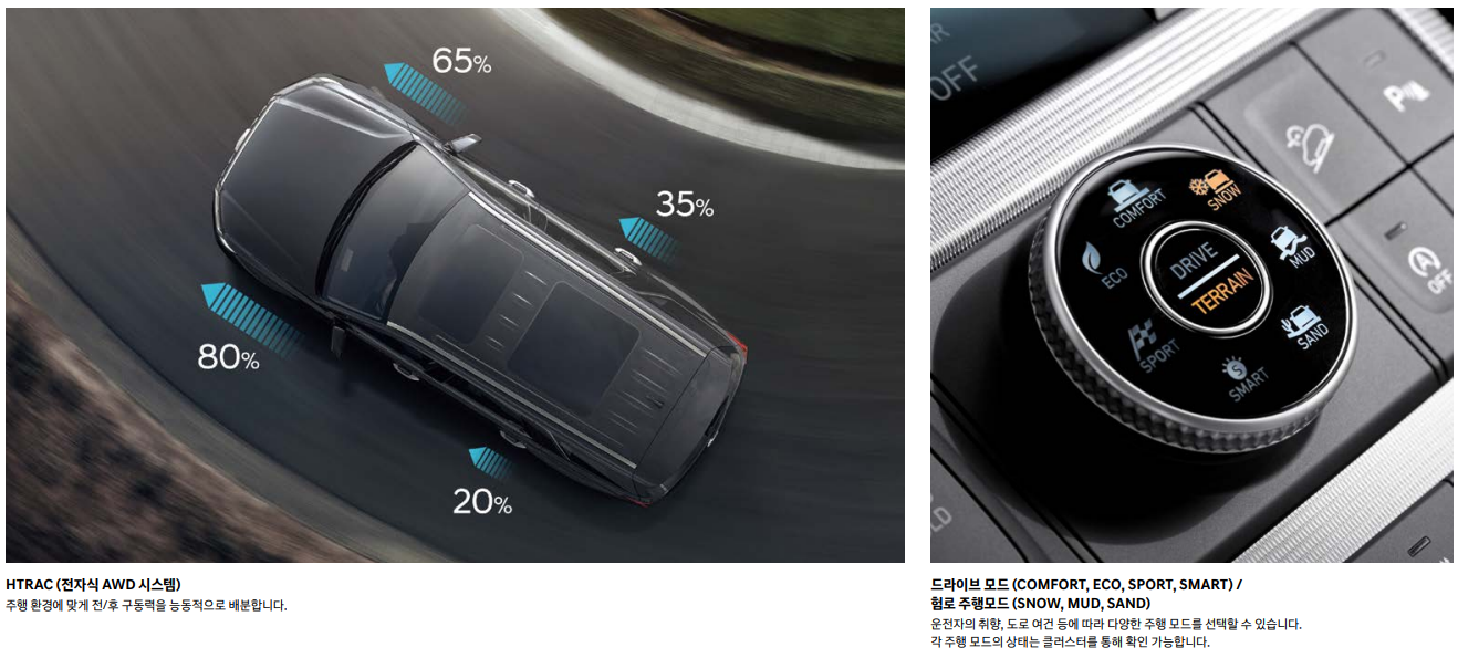 - 팰리세이드 구동방식: 2WD / AWD(HTRAC)