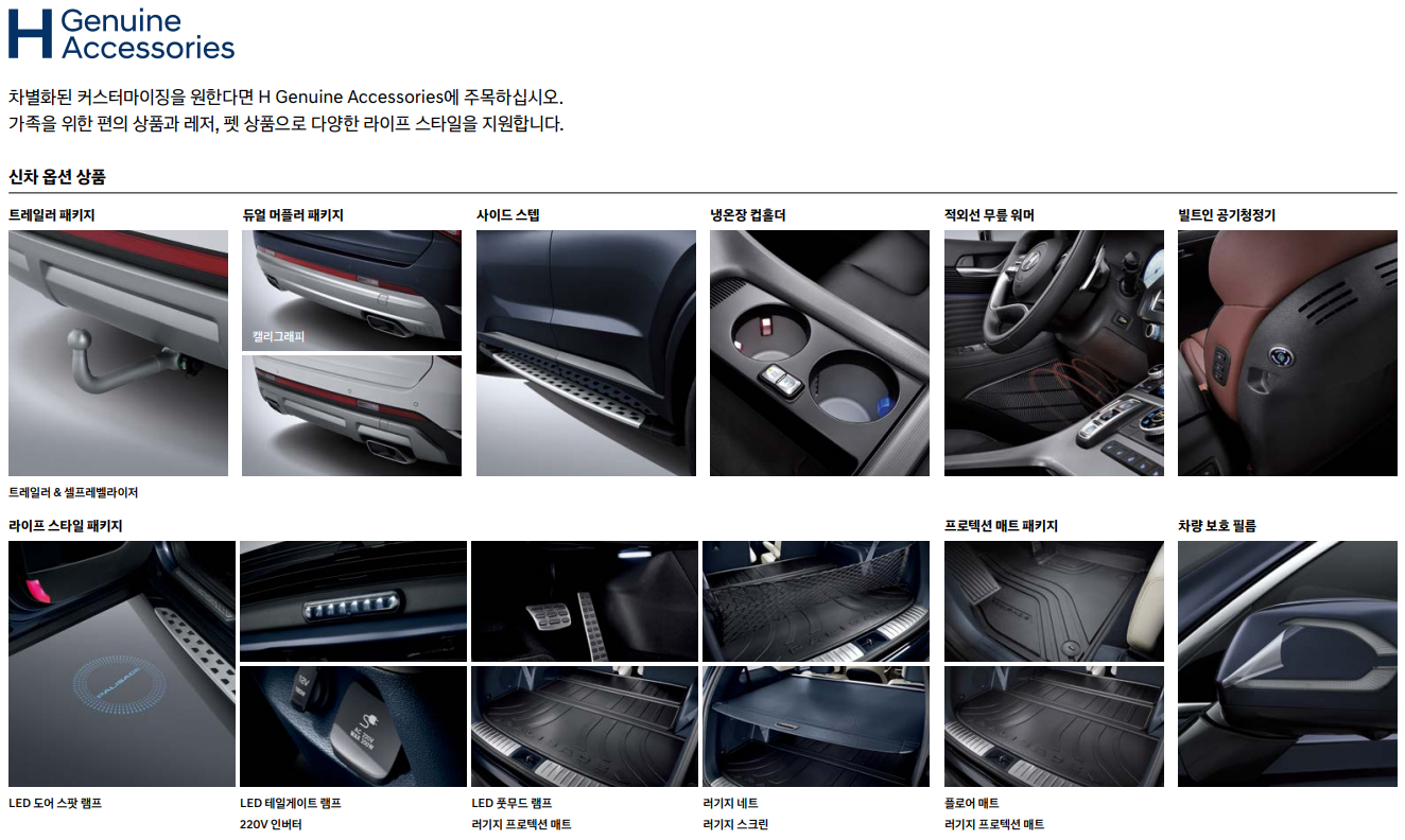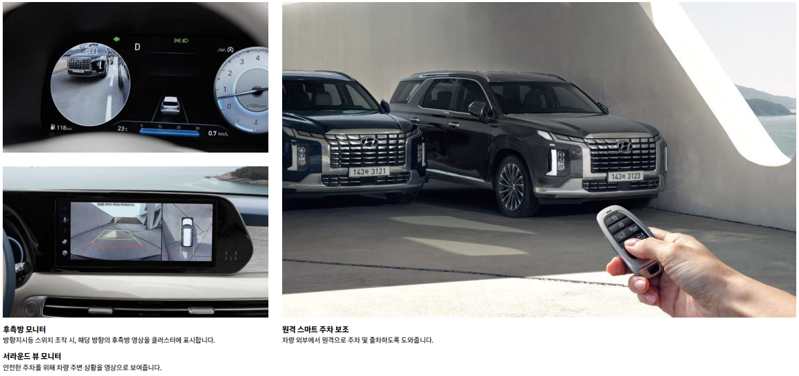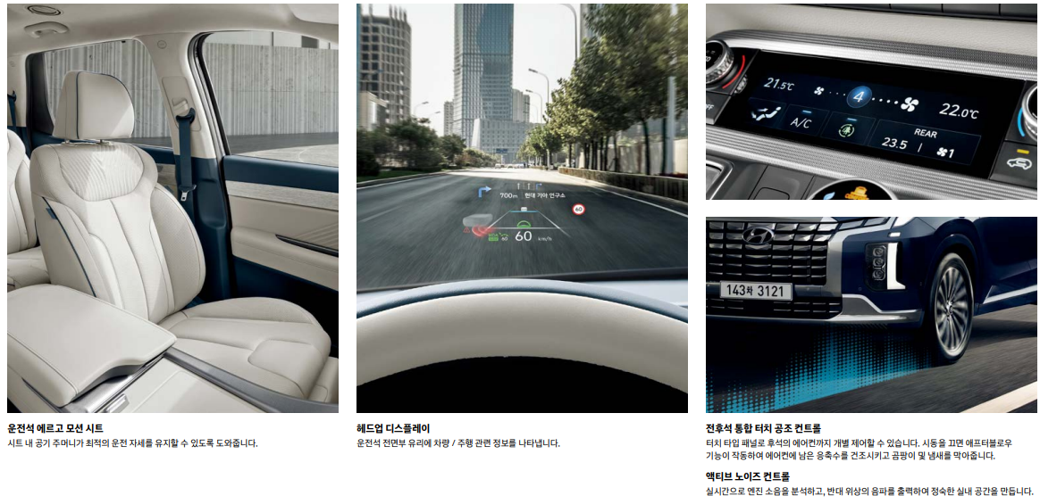 팰리세이드는 다양한 옵션으로 구매자의 취향을 만족시킵니다. 주요 옵션들을 살펴보겠습니다.
