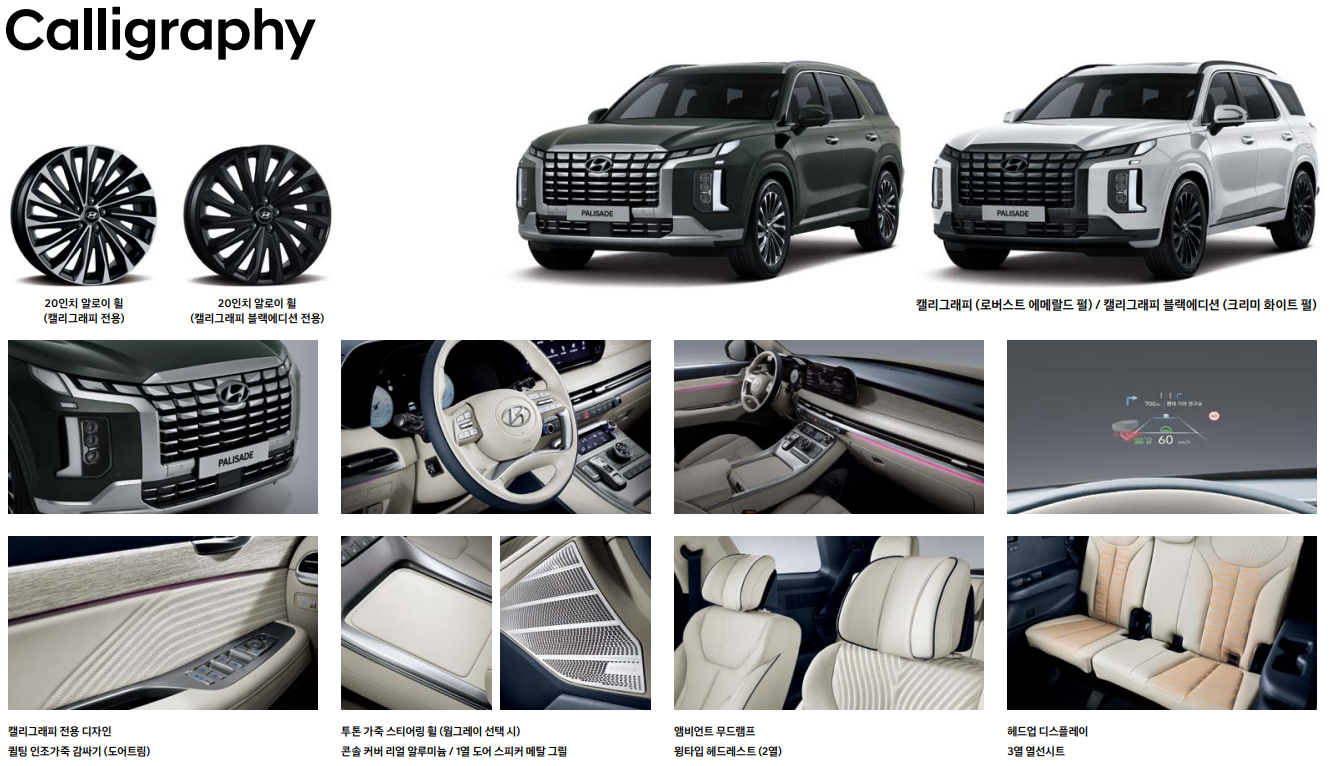 - 팰리세이드 캘리그래피: 5,239만원부터