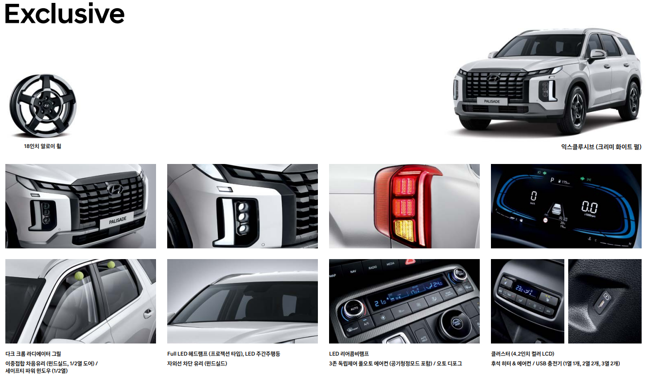 - 팰리세이드 익스클루시브 (기본형): 3,999만원부터