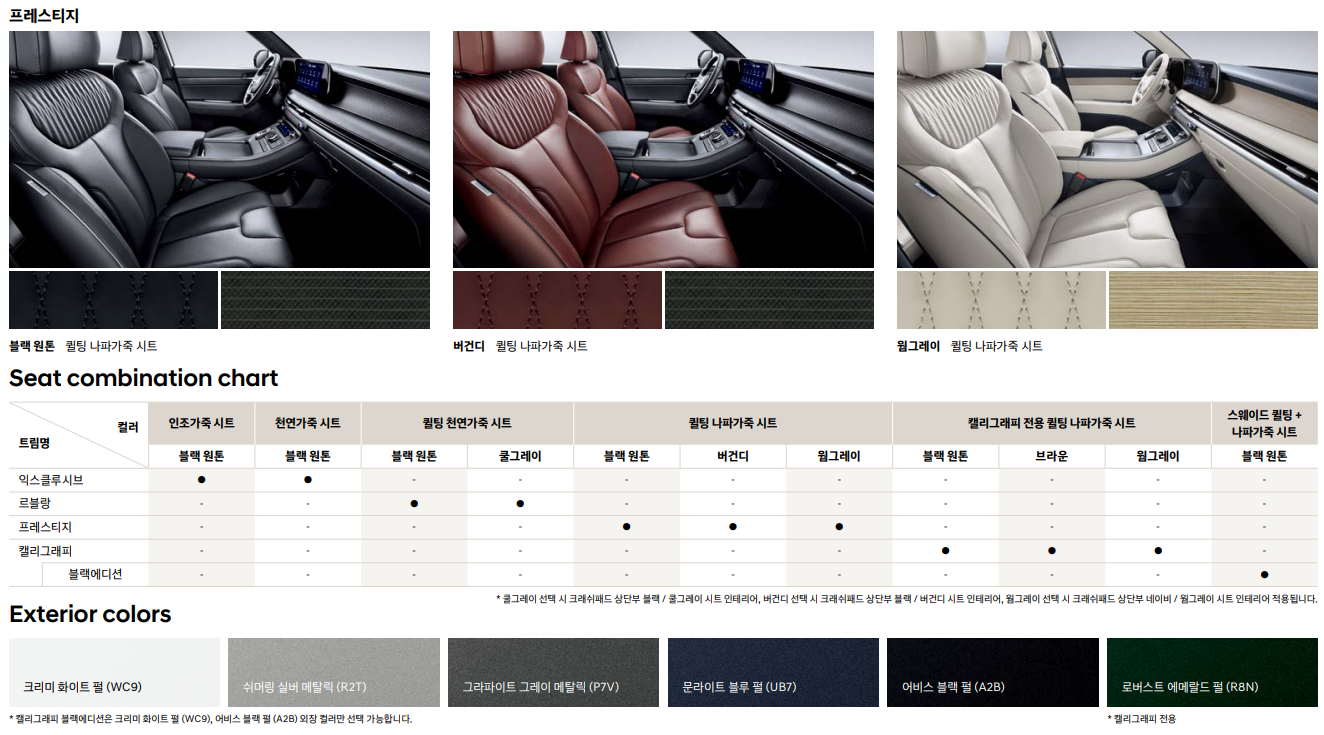 팰리세이드는 다양한 옵션으로 구매자의 취향을 만족시킵니다. 주요 옵션들을 살펴보겠습니다.