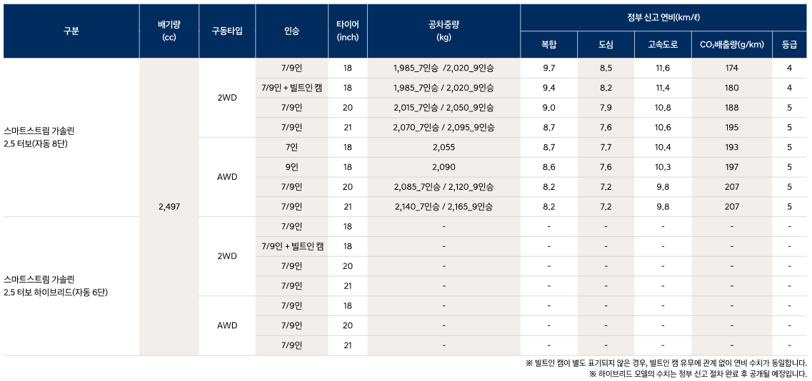 - 펠리세이드 복합 연비: 약 9.5 km/L