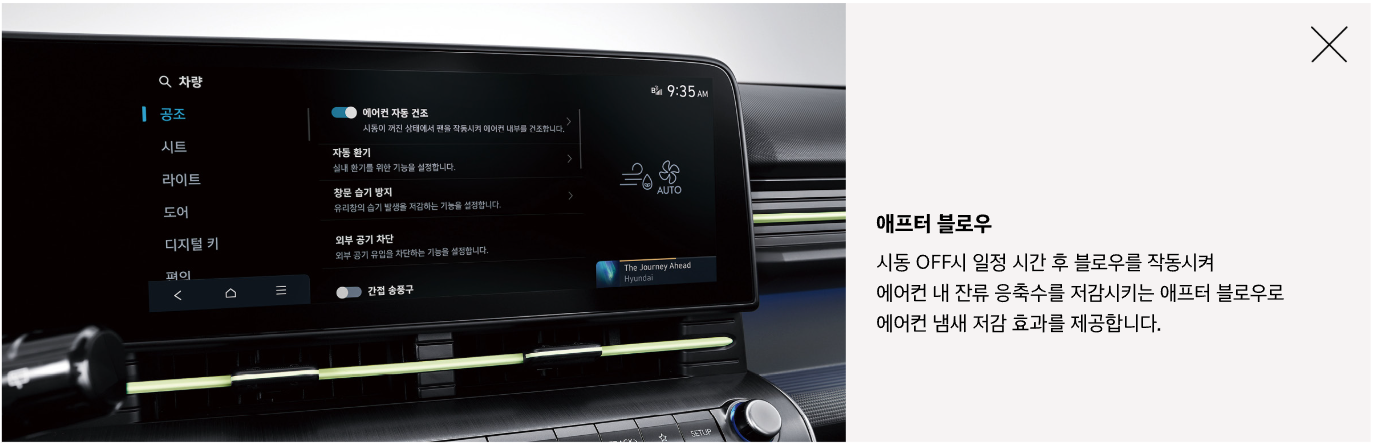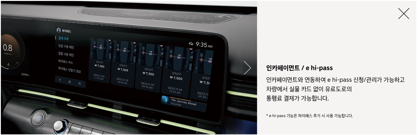 - 헤드업 디스플레이 (HUD): 시선을 도로에 유지하며 주요 정보를 확인 가능.